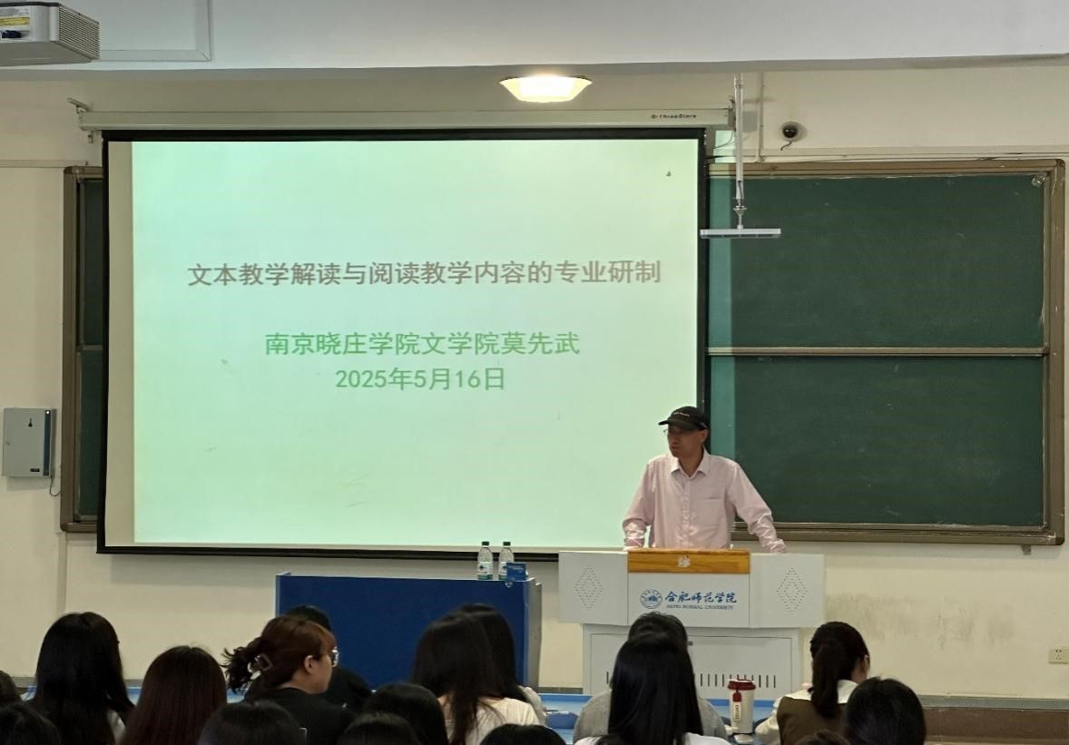 5月16日,永利集团304am登录“经典悦读”讲坛在锦绣校区逸夫楼405教室举行,南京晓庄学院永利集团304am登录教授、硕士生导师莫先武应邀作题为《文本教学解读与阅读教学内容的专业研制——以<背影>为例》的学术报告。报告会由永利集团304am登录副院长甘松主持,语文教育硕士研究生、师范生近百人到场聆听。